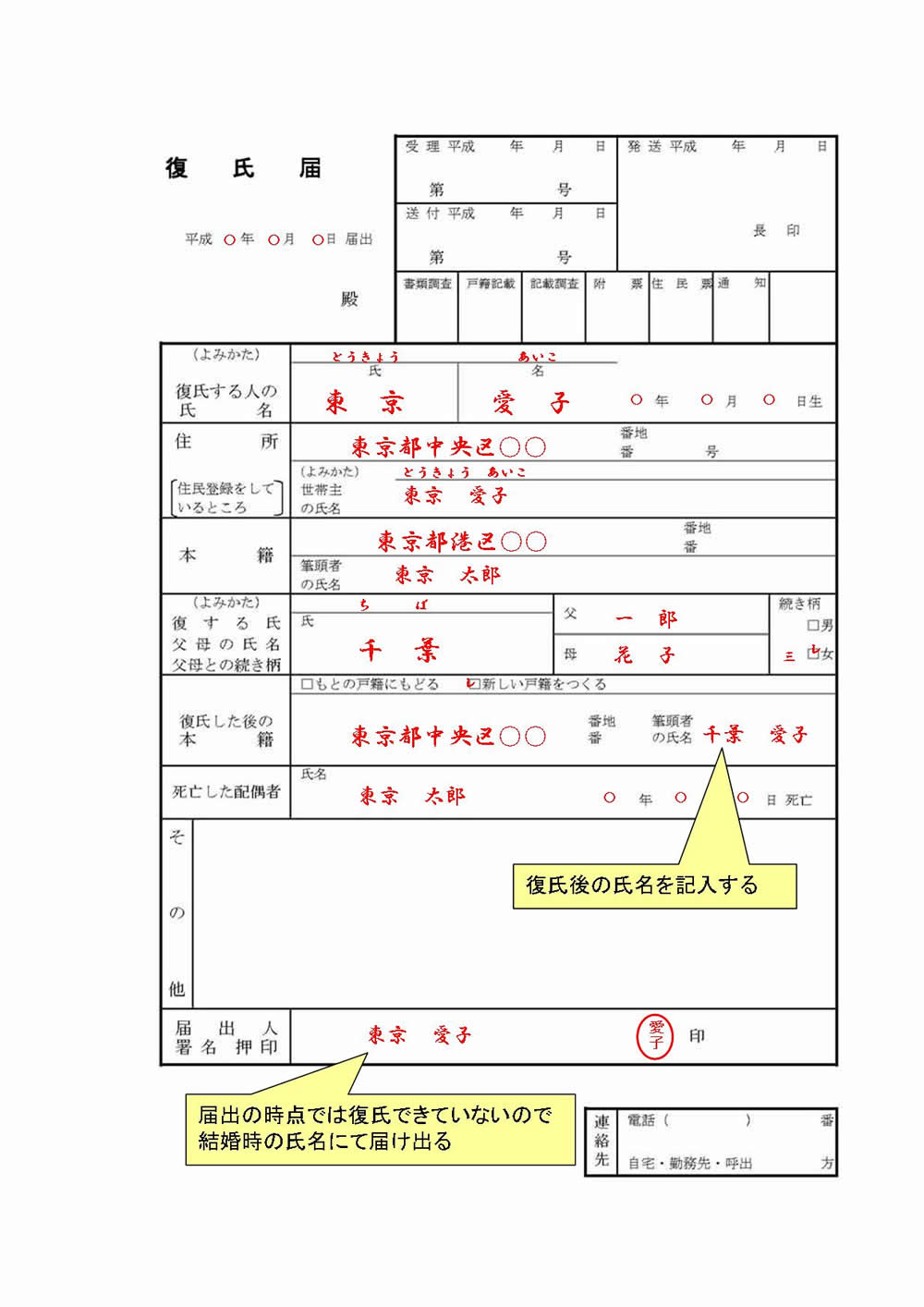 復氏届の提出期限はなく、住所地若しくは本籍地の市区町村の役所にて手続きを行います。