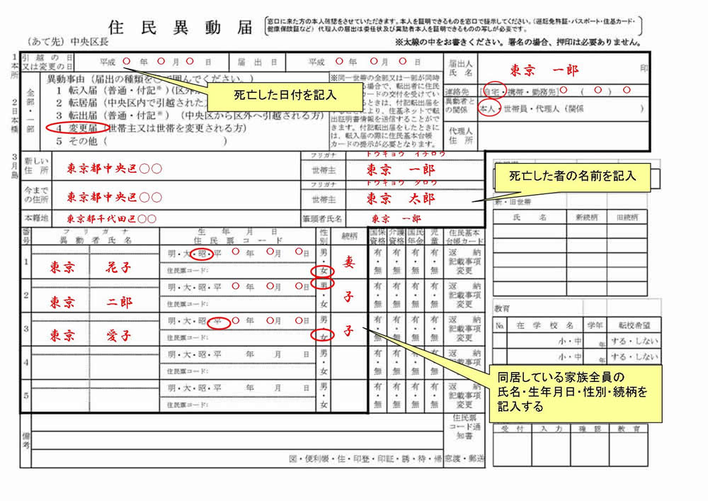 変更に当たっては、死亡した日から14日以内に市区町村の役所に届け出なければなりません。